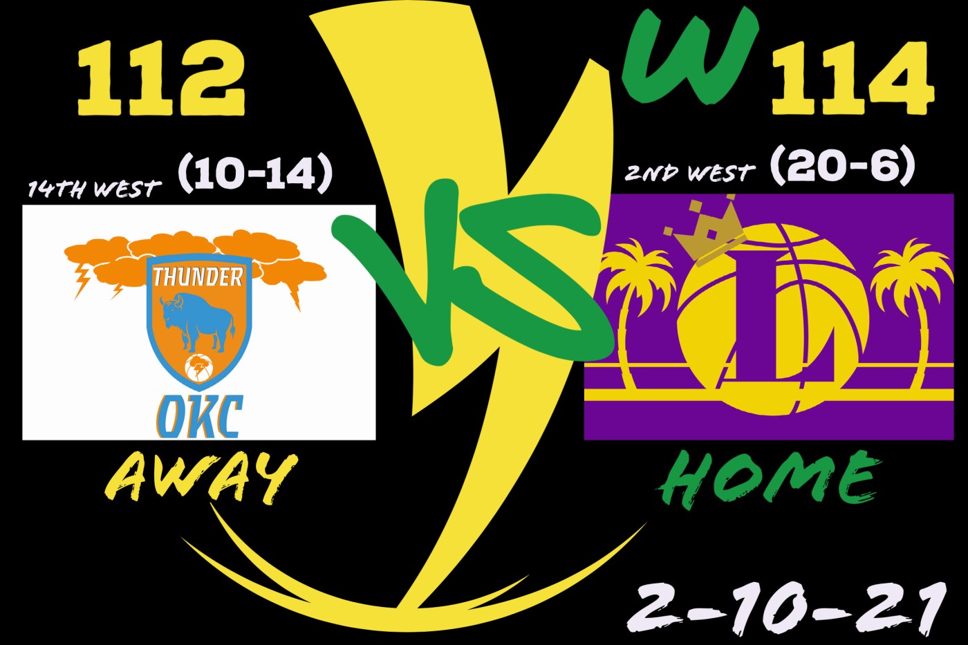 Welp, there goes three straight overtime games versus sub .500 teams. I had half of the correct score. Just wrong about the OT part, and the Thunder decided to cover so I apologize if you lost money.