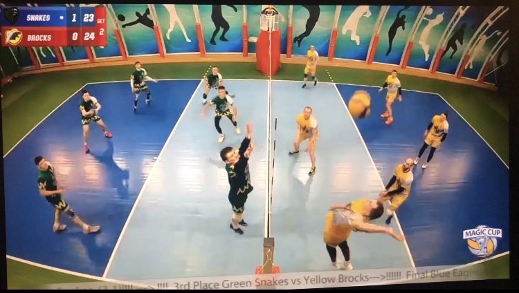 The Green Snakes are up against the Yellow Brocks. Once again, the internet is winning this never-ending battle, so watching the Magic Cup isn’t the easiest task in the world. I believe the bronze medal match is taking place right now. I’m not exactly sure, because information about the Magic cup is still scarce, but I think we’re doing an alright job. The Green Snakes snagged the first set to take an early 1-0 lead. They’re currently up 19-16 in the second set, and if they aren’t careful the Blocks could slither through and snake their victory to tie it up 1-1.
