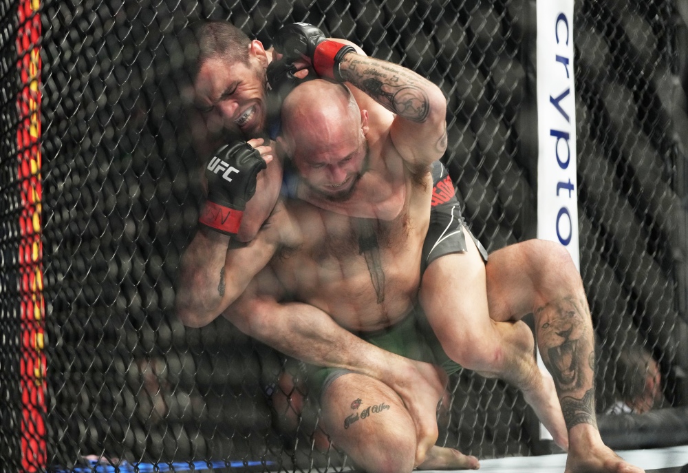 Cousin Umar got Kelleher’s back in acrobatic fashion only to sink in the rear-naked choke in the second round. It was a stellar performance all-around for the Russian. The Nurmagomedov family may be known for their wrestling, but it was those kicks by Umar that had everyone’s attention. His question mark kicks have you wondering more than Riddler and they’ll leave you more discombobulated than Joker. And then as soon as your attention is diverted from those kicks, he goes right back to smothering you on the ground. Then BOOM you got gotcha’d.